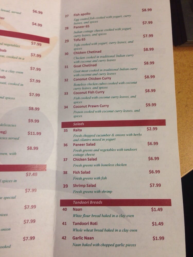 Your choice boneless chicken cubes cooked with onion and bell peppers, or chicken cooked in traditional Indian curry with coconut and curry leaves.